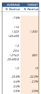 We also prepared average metrics and target values as % of revenue for the coming periods.
