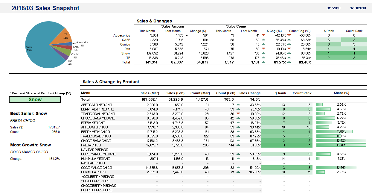 One of the most important goal from this initiative was identifying key product lines for marketing focus and re-pricing. To achieve this, I created this Monthly Snapshot workbook, which directly sources from the stacked transaction-level data. This workbook is 100% synced to the POS data.