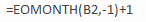1. eomonth: used to get the start and end date of the specified month ("2018/03/01").