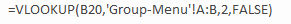 4. vlookup: used to retrieve the name of menus under the specified product group.